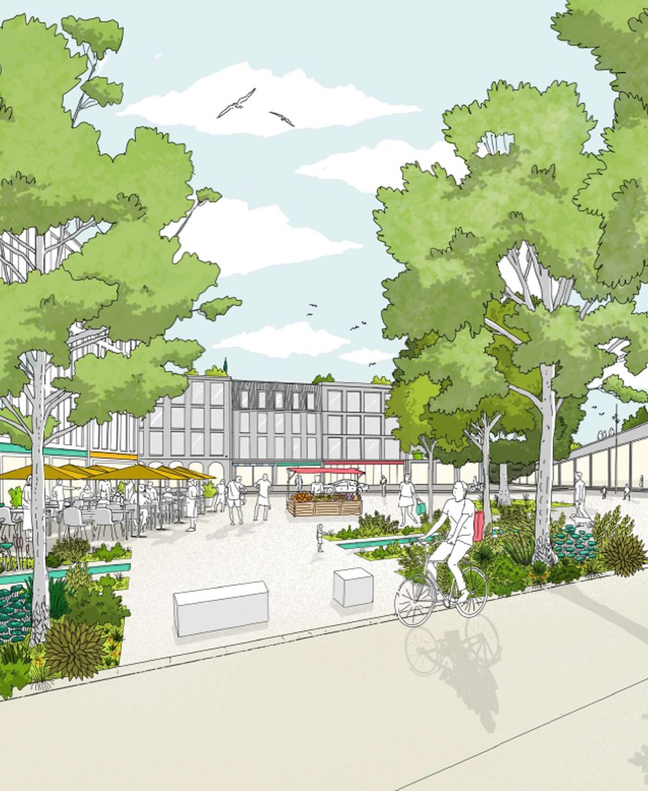 VilleVert prévoit dans sa réflexion également une offre complète de services et d'équipements de proximité. Des commerces de quartier, une halle de marché animée, des restaurants variés ou des ensembles hôteliers viendront enrichir la vie quotidienne des habitants, favorisant ainsi le développement économique local et la création d'emplois.